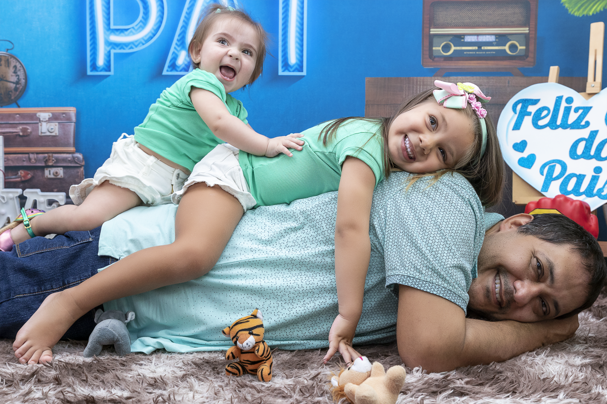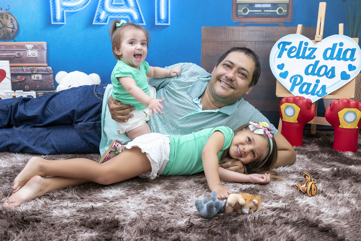 “Alguns heróis não tem capas, eles são chamados de pais.” A Laura e a Júlia vieram com o papai clicar momentos especiais para marcar essa data tão gostosa, que nem abraço de pai! Nós amamos registrar memórias lindas assim, não deixe de marcar sua sessão de fotos com a gente.